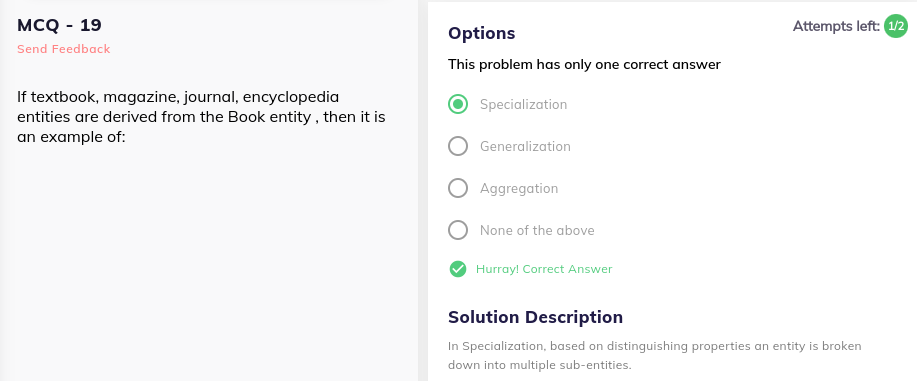 Home DBMS 1 ER Model ER Model By -Digital Dollars July 16, 2023 0 ER ModelMCQ - 1MCQ - 2MCQ - 3MCQ - 4MCQ - 5 (Primary Key)MCQ - 6MCQ - 7MCQ - 8 (Weak Entity)Ans : aMCQ - 9 (Entity)Ans : dMCQ - 10 (Attributes)MCQ - 11MCQ - 12MCQ - 13MCQ - 14 (Relationship)MCQ - 15 (Relationship)MCQ - 16 (ER Diagram)MCQ - 17 (ER Diagram)MCQ - 18MCQ - 19MCQ - 20 (Generalisation)MCQ - 21MCQ - 22 Tags: DBMS 1 Facebook Twitter Whatsapp Newer Older